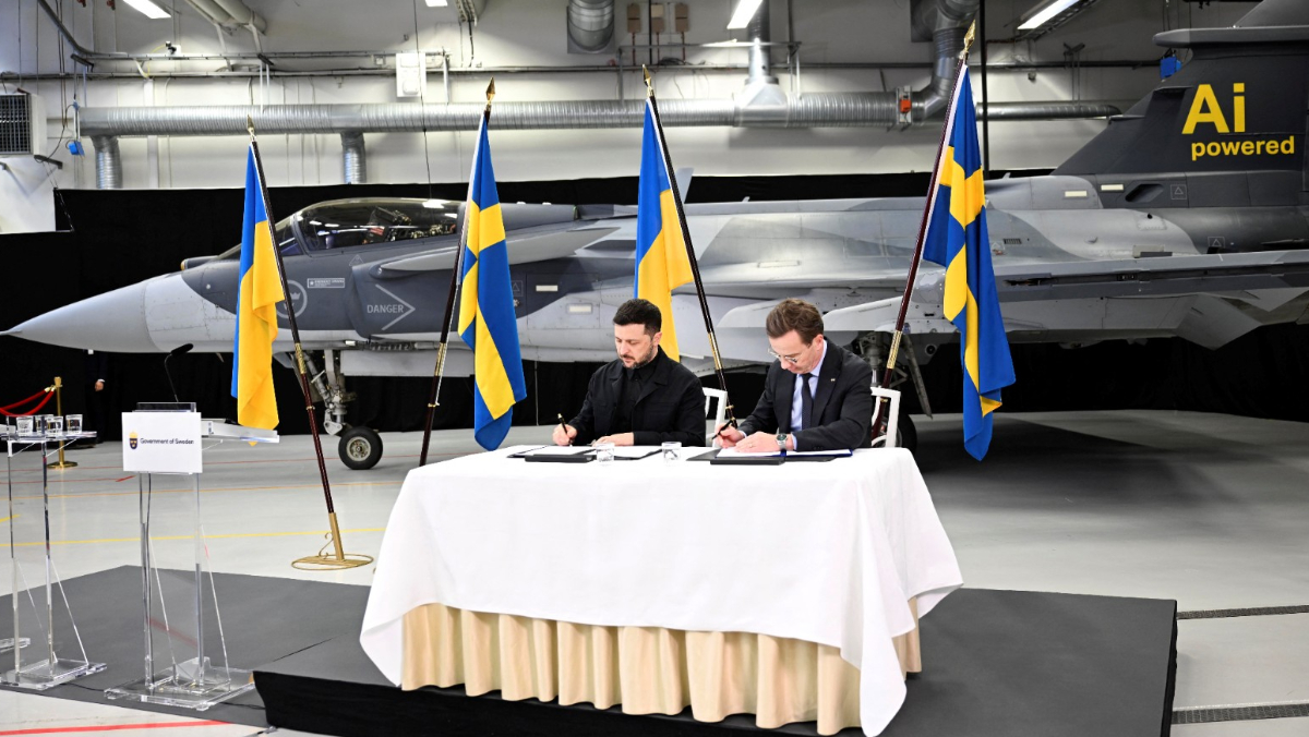 烏克蘭總統澤倫斯基22日訪問瑞典,在瑞典南部城市林雪平的紳寶公司與瑞典總理克里斯特森會面,兩國領袖在會面後的記者會上宣布烏克蘭將向瑞典購入100至150架最新型的E型獅鷲戰機(Jas Gripen E)。