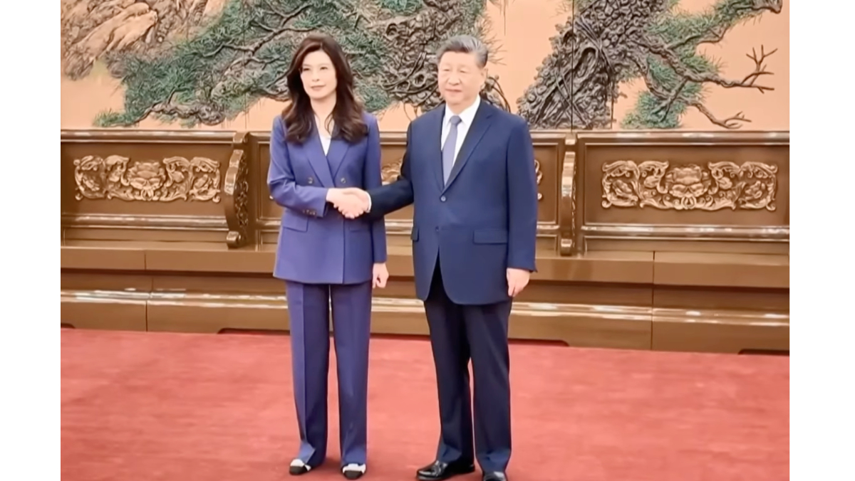 鄭習會10日上午11點在北京人民會堂督大廳登場,國民黨主席鄭麗文、中共中央總書記習近平雙方握手14秒寒喧,透過直播畫面,可見鄭麗文穿著藍色西裝、西裝上別著國民黨黨徽的胸章,特別的是,鄭麗文沒穿高跟鞋,而是穿著一雙平底鞋,看起來與習近平身高相當,並沒有高過習近平。
