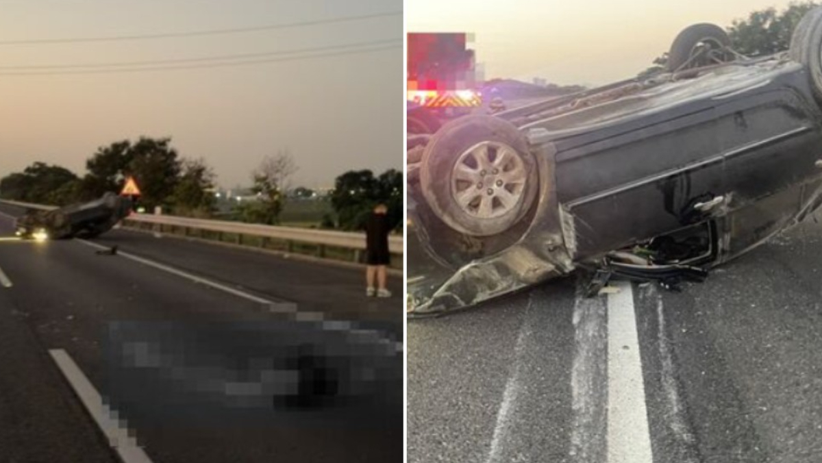 國道1號雲林虎尾路段今天(11/16)發生死亡車禍!一輛黑色小客車,由19歲蔡男駕駛,後座載著19歲的許男,清晨5點多,轎車行經南向237.6公里處時,不明原因突然自撞護欄翻覆,撞擊力道猛烈,許男當場噴飛出車外,甚至行駛於後方的陳男煞車不及再撞上許男,許男當場頭部重創明顯死亡,整起事故造成1死5傷悲劇,詳細車禍原因仍待進一步調查釐清。