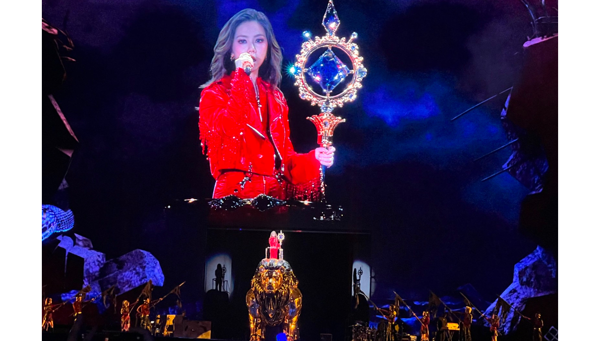 鄧紫棋「I AM GLORIA世界巡迴演唱會2.0」今(4╱9) 起一連4天在台北大巨蛋開唱,16張門票一開賣就秒殺,票房狂捲6.85億元,更創下第1位攻大巨蛋的香港女歌手紀錄,今她以一身紅色戰袍小露蠻腰、拿著權杖騎著金獅登場,高喊「Taipei」揭開序幕,一連演唱3首歌展現鐵肺歌后功力。