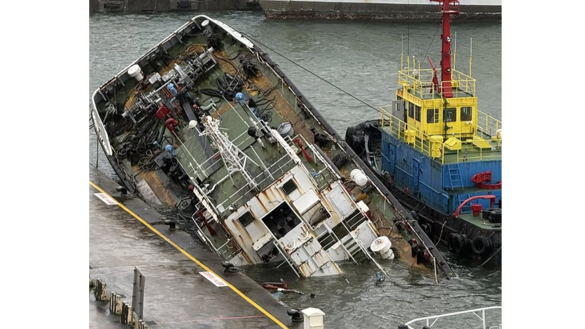 今日(10/21)颱風「風神」外圍環流和東北季風共伴效應影響,北台灣出現強風豪雨,風浪持續增強,惡劣天氣導致基隆港區上午出現船隻傾斜意外,停靠東15號碼頭的港勤油駁船「宏略8號」疑因裂縫擴大進水,船尾下沉、船首半沉入海,所幸船上無人傷亡,也未發生油汙外洩,目前相關單位已派員布設攔油索,並於近日派人將船移置他地處理。
