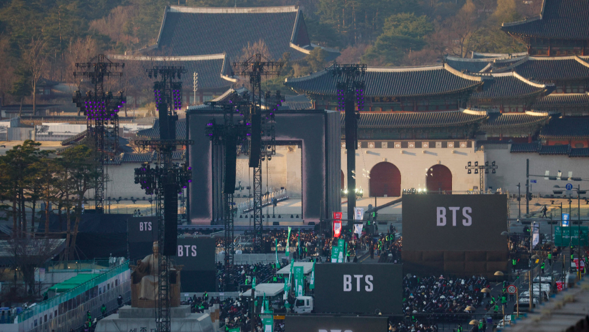 據南韓媒體週五(3/20)報導,南韓偶像團體「防彈少年團」(BTS)今晚在光化門開唱,包下「首爾心臟」的價碼,卻比想像中便宜,一週僅需支付約60萬元台幣,比一般演唱會場館的使用費更低。