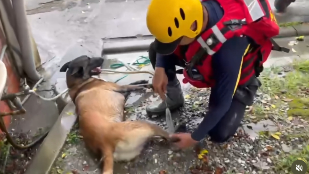 花蓮光復鄉日前受洪流重創,災後除專業搜救人員和志工投入救災外,還有不少搜救犬穿梭災區協助搜索。不過狗狗們英勇穿梭災區的身影引起許多人關注的同時,不少愛狗人士見到搜救犬未穿鞋,紛紛詢問相關單位能否讓狗狗的腳穿戴裝備,擔心搜救犬會受傷。對此,台南市特搜隊回應,趾爪能幫助犬隻抓握地面地形,並分享一心碎故事,指出配戴裝備有時反會增加犬隻受傷風險。