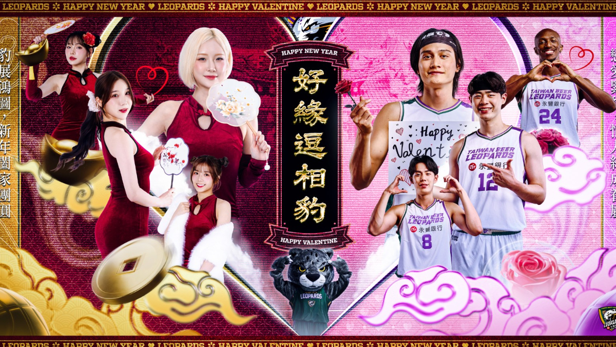桃園台啤永豐雲豹本週末2月14日(六)及2月15日(日)將於中壢國民運動中心,迎戰聯盟前段班勁旅福爾摩沙夢想家與新北中信特攻,週末適逢西洋情人節與農曆小年夜,球團特別推出「好緣逗相豹」主題週,將中壢主場打造為充滿粉紅泡泡與年節喜氣的雙重慶典,號召球迷進場與「浪LIVE電豹女」共度浪漫與年味兼具的週末時光。