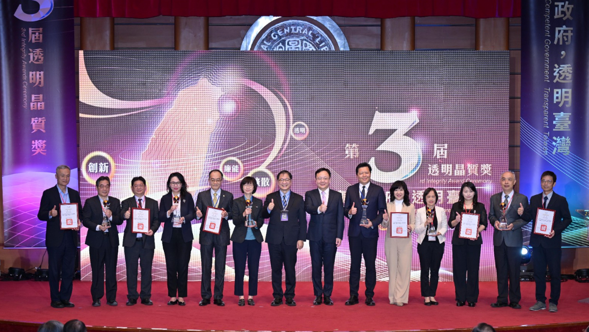 第3屆「透明晶質獎」頒獎典禮在今(11/25)日於國家圖書館國際會議廳隆重舉行,總統賴清德特別透過賀電向所有獲獎機關表達誠摯祝賀,並期許透過此獎項推動公部門精進廉能創新,為國家樹立清廉治理的標竿典範。