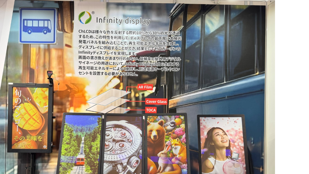 全彩膽固醇液晶(ChLCD)顯示廠虹彩光電,宣布攜手日本電力公司,於11月15日至23日假高尾山與八王子市舉辦的相關活動中,首度展示以全彩電子紙打造的電線桿智慧顯示應用。展區橫跨八王子市主要街道與高尾山地區,示範如何以電子紙取代傳統印刷式電線桿廣告,並支援-20°C至85°C的超寬溫運作環境。