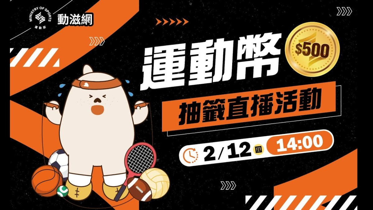 運動部於今(2/12)日下午2點舉行「115年運動幣」公開抽獎儀式,共抽出60萬份運動幣,每份面額500元,提供幸運中籤民眾專屬運動補助。抽獎活動在運動部長李洋見證下進行,由擊劍新星李讓自抽球機抽出中籤號碼,並由曾參與《全明星運動會》的黃沐妍(小豬)擔任主持人,全程公開透明。