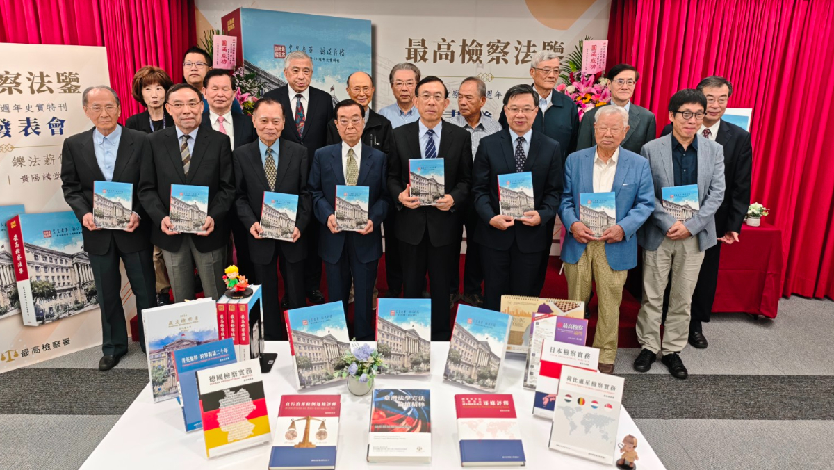 檢察總長邢泰釗將於下週光榮卸任,著作等身的他,在4年前擔任總長後就開始精心籌畫最高檢察署署誌,經過4年的努力終於完成,今(4/30)日在貴陽講堂隆重舉行《最高檢察法鑒》新書發表會,為台灣司法留下重要的文化印記。這本書以「皇皇者華 鑠法薪傳」為題,系統性梳理了最高檢察署的組織沿革、制度發展及歷史脈絡,全面展現台灣百年檢察制度的演進與未來展望。