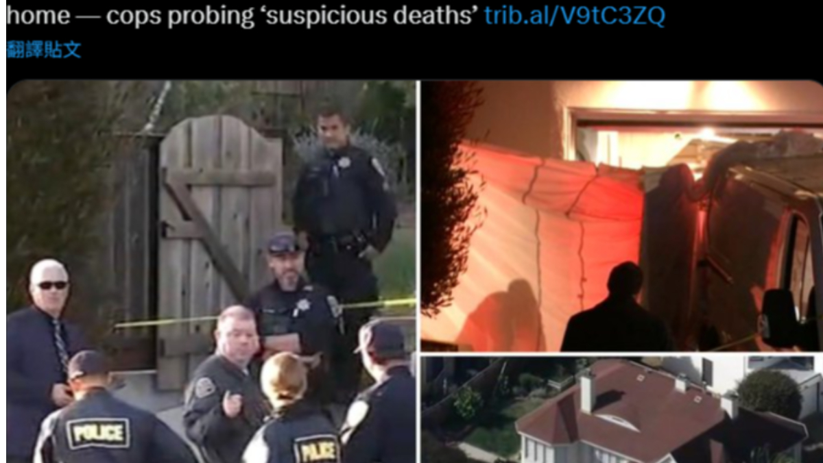 恐怖命案!美國加州舊金山富人區一棟價值約6400萬台幣的豪宅,10月8日驚傳一起命案,美國警方在屋內發現4人陳屍,其中兩人還是未成年兒童,且關係還是父母與兩名女兒,死因被當地警方列為「可疑死亡」。警方表示,命案可能跟這個家庭之財務危機有關,至於為兇殺或是自殺,仍有待進一步調查釐清。