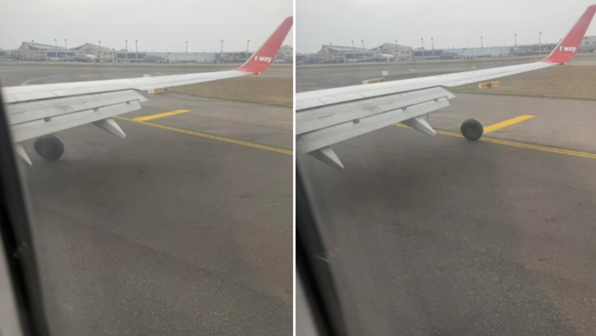 今天(2/8)桃園機場發生意外,下午接近4點時,德威航空一架從濟州島回桃園機場的班機,準備降落桃園機場北跑道時,竟然輪胎掉落在跑道上,甚至導致後續日本航空班機也壓到碎片。一位網友拍下,輪胎在跑道上亂竄的恐怖畫面,網友還說當場差點「嚇死」。對此,桃園機場也緊急關閉北跑道,進行全面檢查。