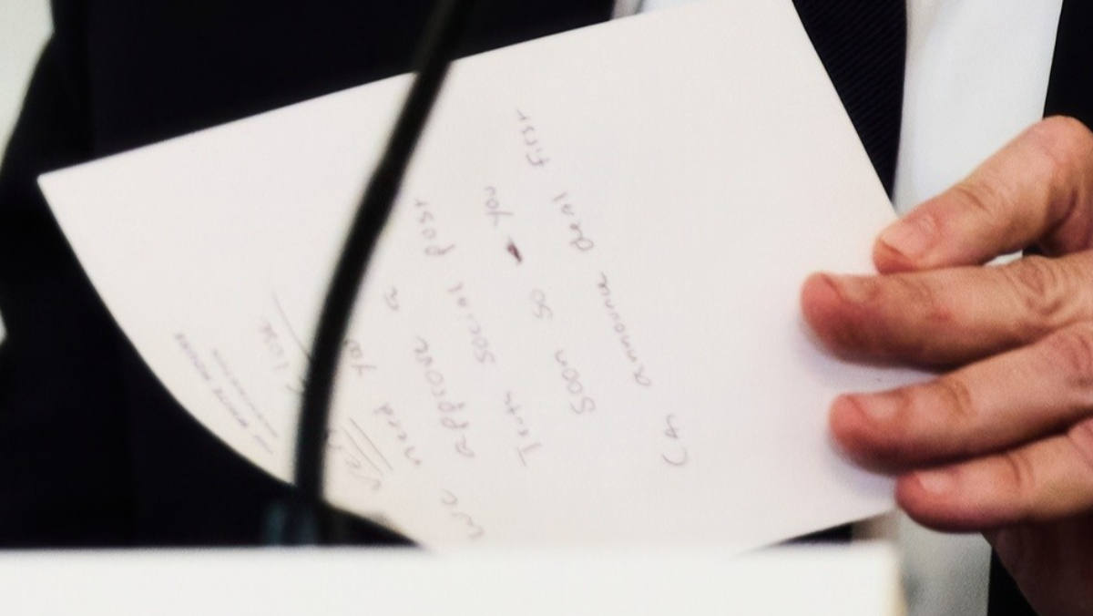 美國總統川普週三(10/8)在社群媒體搶先宣布,以色列與巴勒斯坦武裝組織哈瑪斯已達成和平計畫第一階段協議。當天稍早,他在會議中收到一張關於此事的紙條,引起媒體注意。