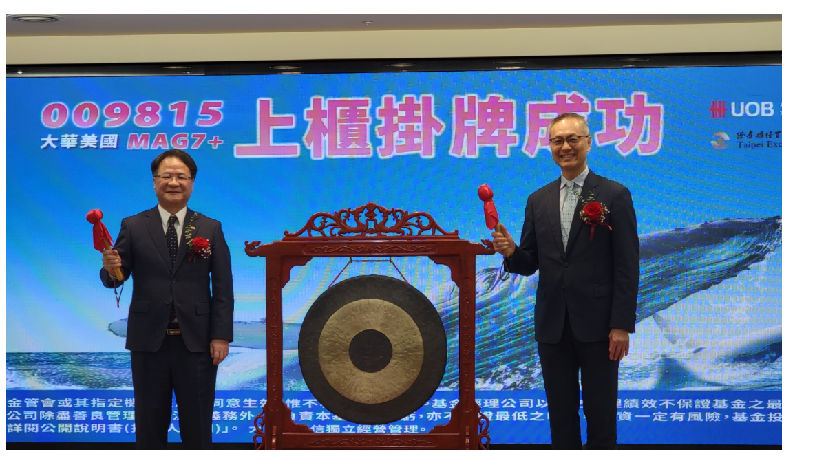 納入美股和台積電ADR,櫃買和彭博聯名的首檔ETF 大華美國MAG7+(009815)今天正式於櫃買中心掛牌。009815為全台首檔聚焦美股「七大科技巨頭(Magnificent 7)」的ETF,在009815加入後,櫃買中心ETF 己達109檔,規模上看3兆元。