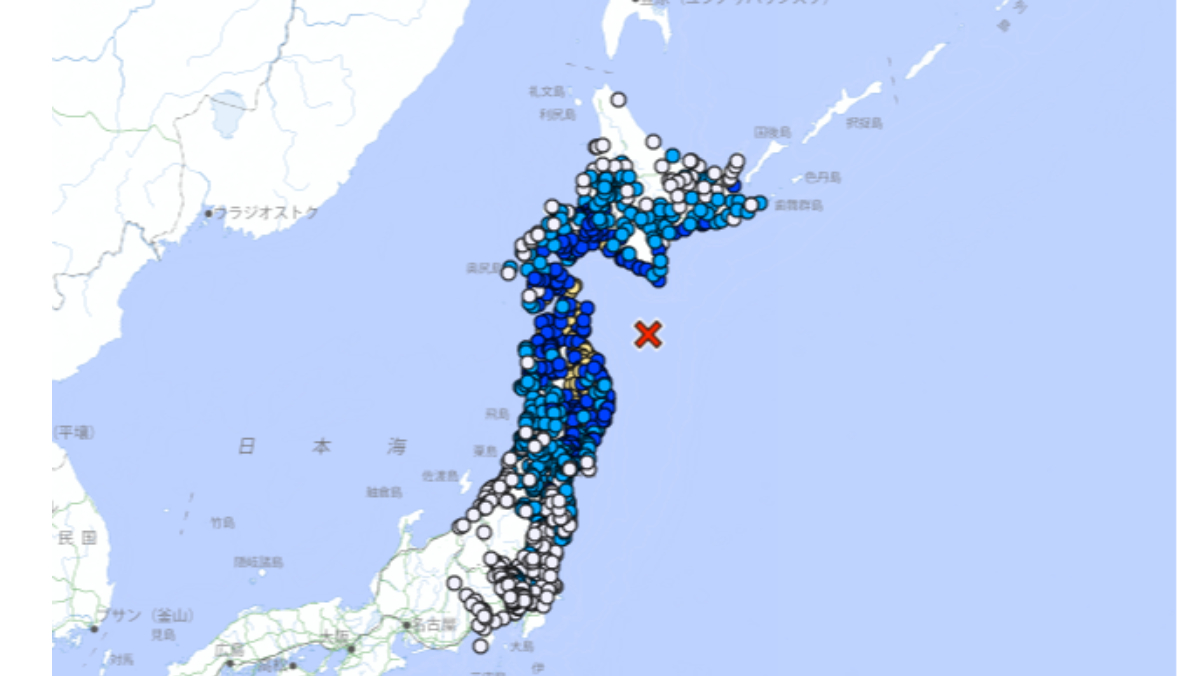日本青森縣東方外海昨(12/8)晚發生規模7.5地震,一度觀測到高達70公分海嘯襲來。日本氣象廳示警,震感強烈地區需在地震發生後約一週內,注意防範震度最高達6級以上的強震,且有發生震感更強烈的餘震可能。