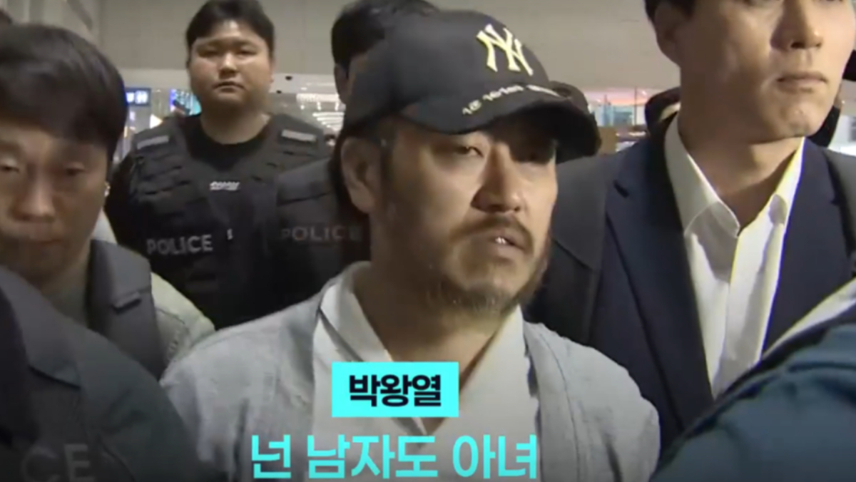 據南韓媒體今天(3/25)報導,被稱為「南韓毒王」、甘蔗田殺人案主謀朴汪烈,今天被引渡回南韓,他惡名昭彰,2016年曾在菲律賓甘蔗田殺害3名南韓人,於當地遭判刑入獄,但在獄中持續透過線上販毒,向南韓輸送大量毒品,今天在機場現身時,朴汪烈面對記者提問,突然怒嗆:「你不算男人」。