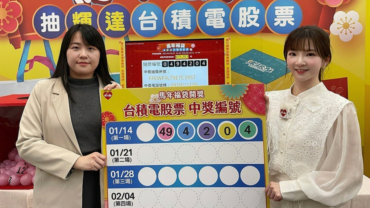台積電近期股價創下歷史新高之際,超商通路也誕生話題級幸運得主。萊爾富今(1/14)下午公開抽出「馬年春節福袋」頭獎,由百元福袋幸運兒抱回一張台積電股票,依當日收盤價1,710元計算,市值約新台幣171萬元,堪稱超商通路史上最具話題性的福袋大獎之一。