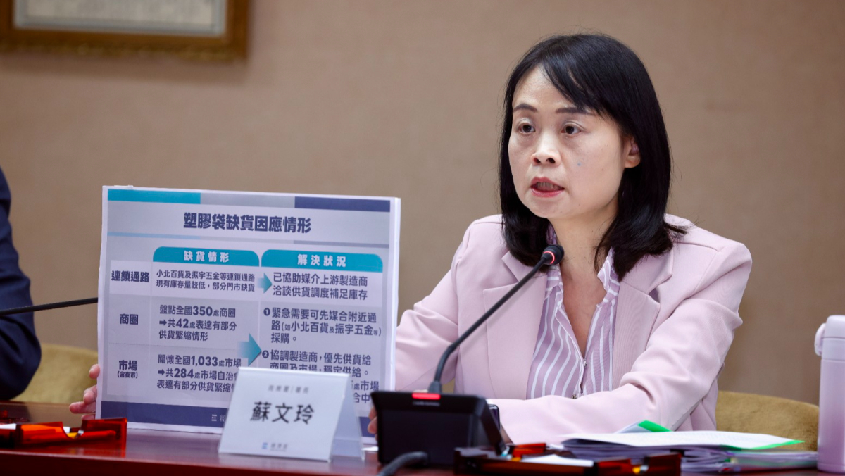 民進黨立委邱議瑩今(9)日質問,為何經濟部一直說塑膠袋不缺,但昨天大型通路商家樂福也宣布「限購一組」。對此,經濟部商業者署蘇文玲說明,昨天已與家樂福聯繫,因發現民眾有「搶購」跡象,所以才宣布限購,但存貨是足夠的。