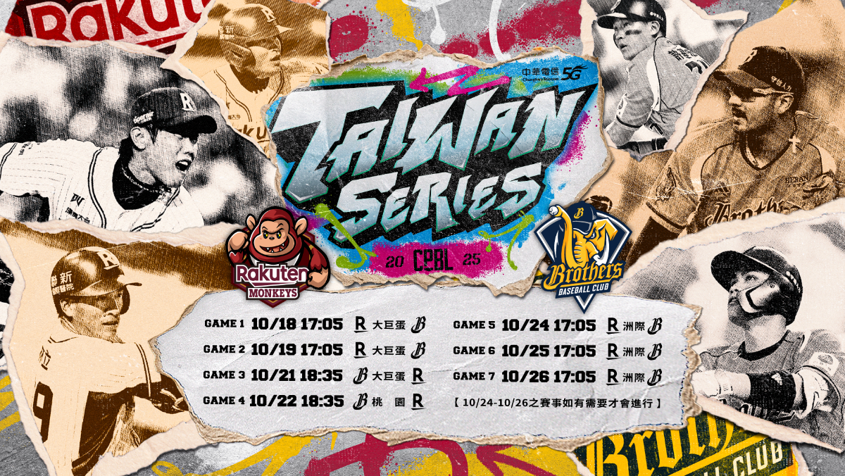 CPBL(Chinese Professional Baseball League,中華職棒大聯盟)台灣大賽將於10月18日開打,由樂天桃猿對決中信兄弟,兩隊相隔3年再於台灣大賽交手,七戰四勝系列賽前3場將於臺北大巨蛋展開。