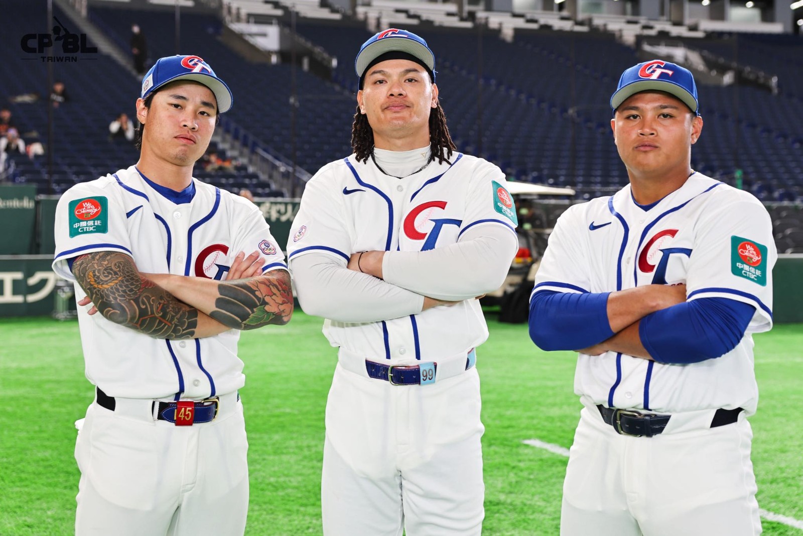 李灝宇今日現身東京巨蛋和台灣隊拍攝合照,神情看起來相當輕鬆。翻攝自 CPBL中華職棒臉書