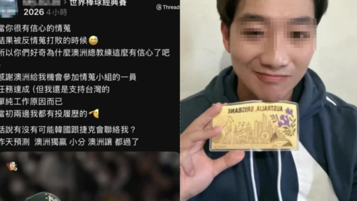 2026年世界棒球經典賽WBC昨(3/5)開打,台灣首戰不敵澳洲隊落敗,賽後社群Threads上突然出現一名網友「陳柏豪」發文嘲諷台灣隊敗北,還自稱是澳洲隊情蒐小組成員,相關言論迅速在網路上擴散,引發球迷不滿。