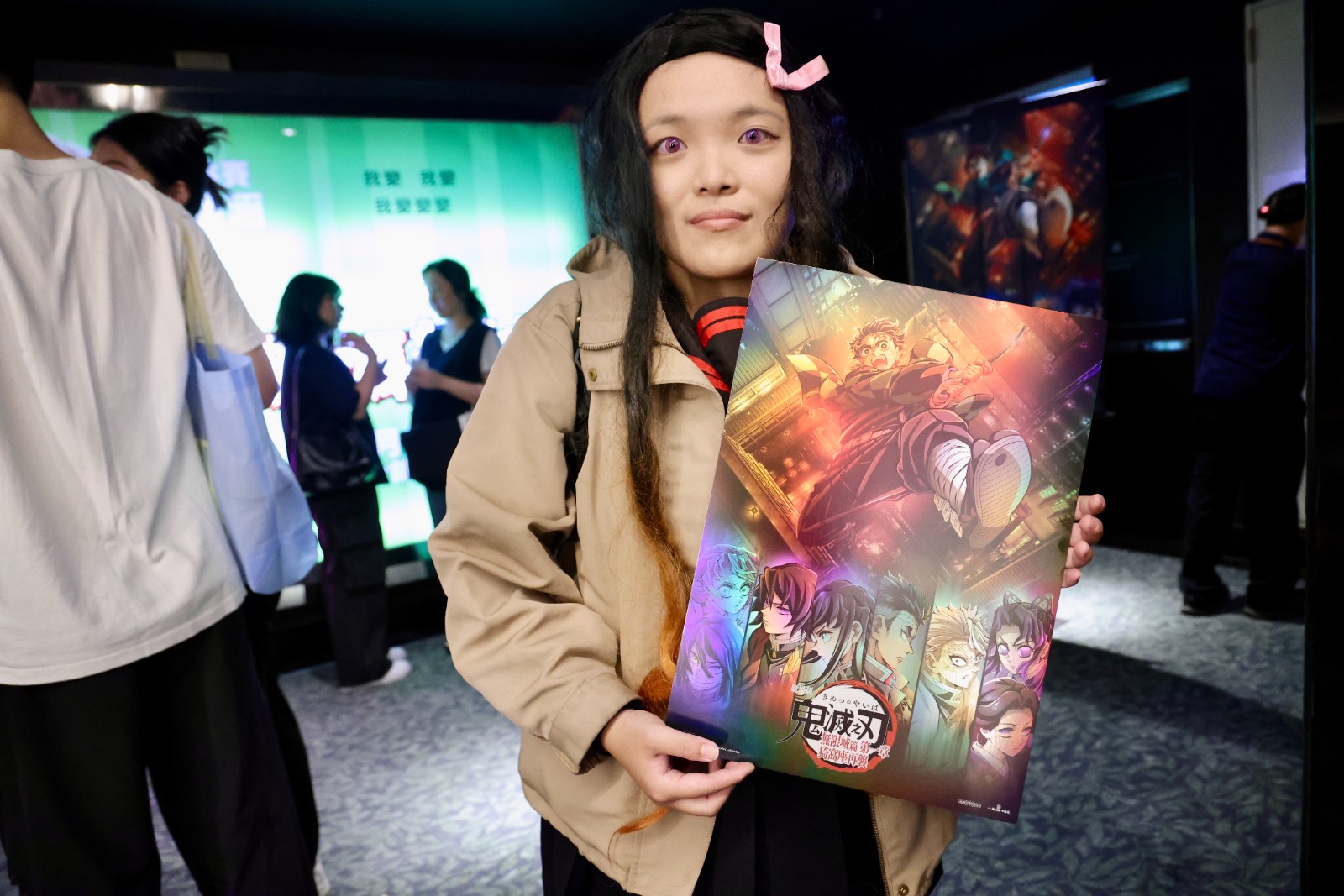 電影特典吸引許多粉絲走進戲院,圖為《鬼滅之刃》觀眾與戲院特典海報。資料照,李政龍攝