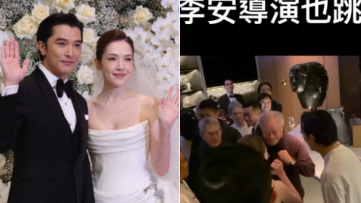 新人也來到李安這桌,李安給予祝賀外,還熱情地與新人交談,現場突然播放音樂,而新娘許瑋甯隨音樂擺動身體,李安見狀也跟著舞動,大方展現親人的一面,不少留言誇讚李安很可愛,也有人表示「我以為他們有合作新戲」。
