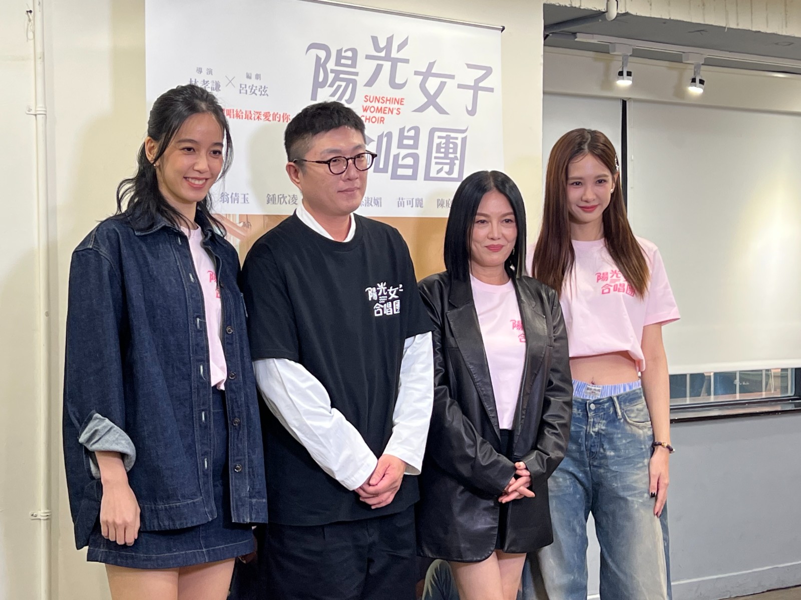 安心亞(右起)、苗可麗、編劇呂安弦、陳庭妮分享《陽光女子合唱團》拍攝點滴。黃于珊攝