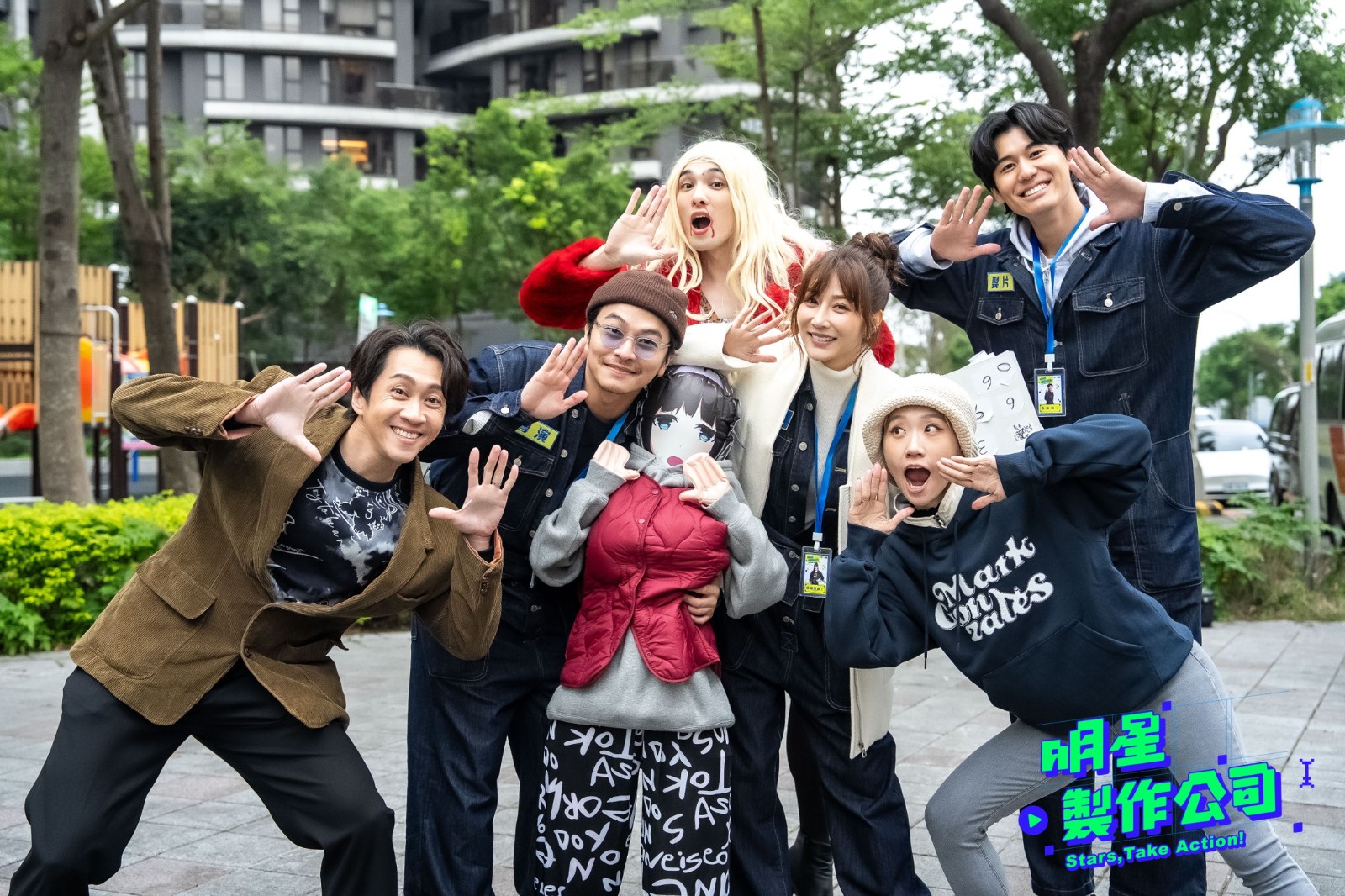 陳漢典(前排左起)、楊銘威、曾莞婷、Lulu、黃偉晉(後排左起)、風田挑戰「短劇製作」。TVBS提供