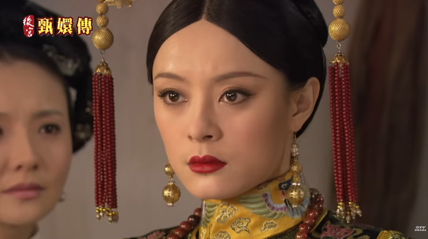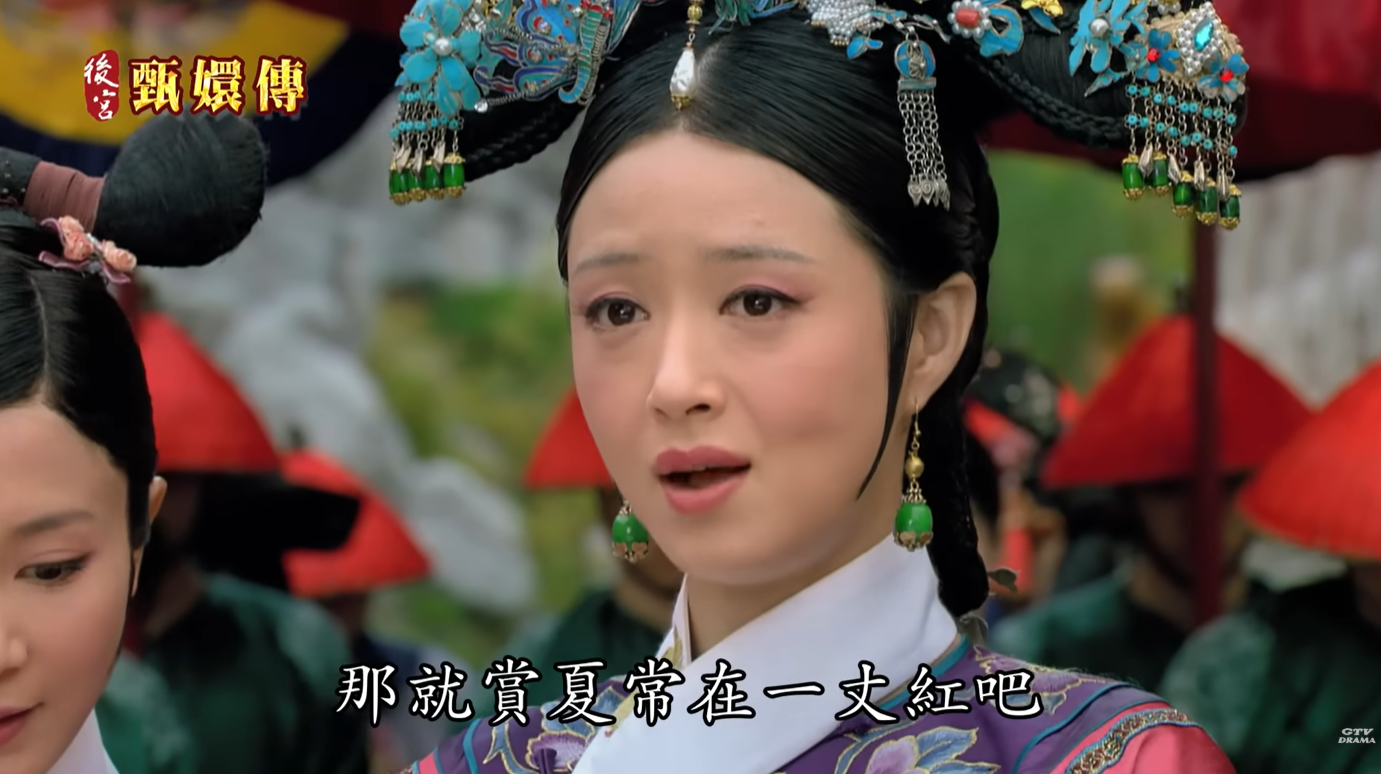 華妃初登場,就賞夏常在「一丈紅」,威嚴震懾全場,也立下了囂張跋扈的角色形象。翻攝自八大劇樂部YT