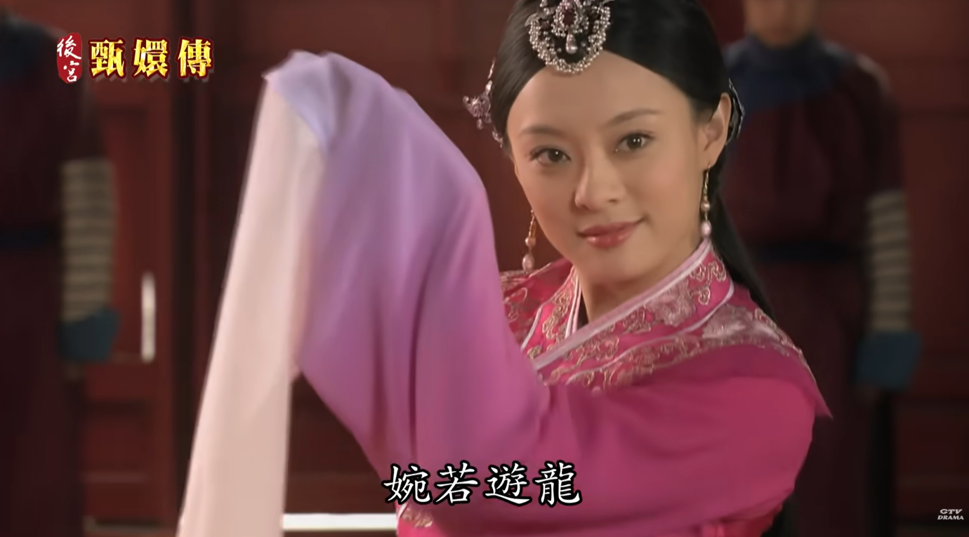甄嬛一舞驚鴻,除了巧妙替自己化解危機,也是果郡王對她心動的開始。翻攝自八大劇樂部YT