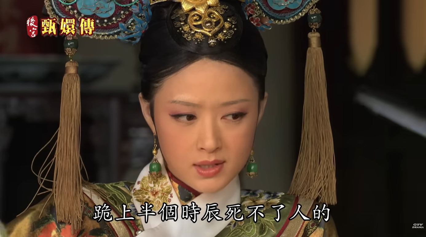 華妃大熱天罰甄嬛跪在戶外,導致甄嬛第一次小產。翻攝自八大劇樂部