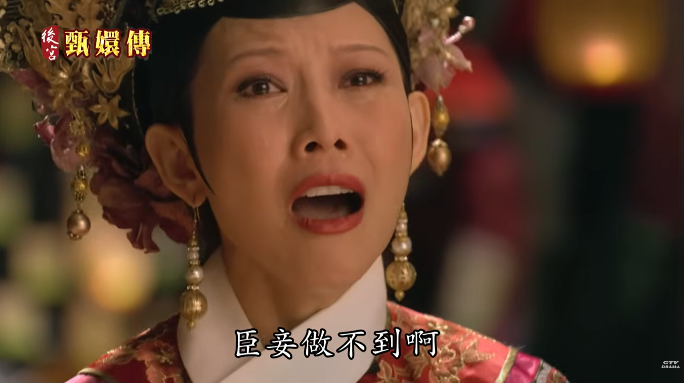 皇后倒台「臣妾做不到啊」(第72集)皇帝與皇后對峙,皇帝終於發現多年前的純元皇后之死有所隱情,皇后懇切像皇帝傾訴自己多年以來對皇上的癡心不悔、后位最初被純元皇后奪走的不甘與嫉恨,「臣妾多想要恨你,但臣妾做不到啊」台詞也成了網路哏圖的來源之一。