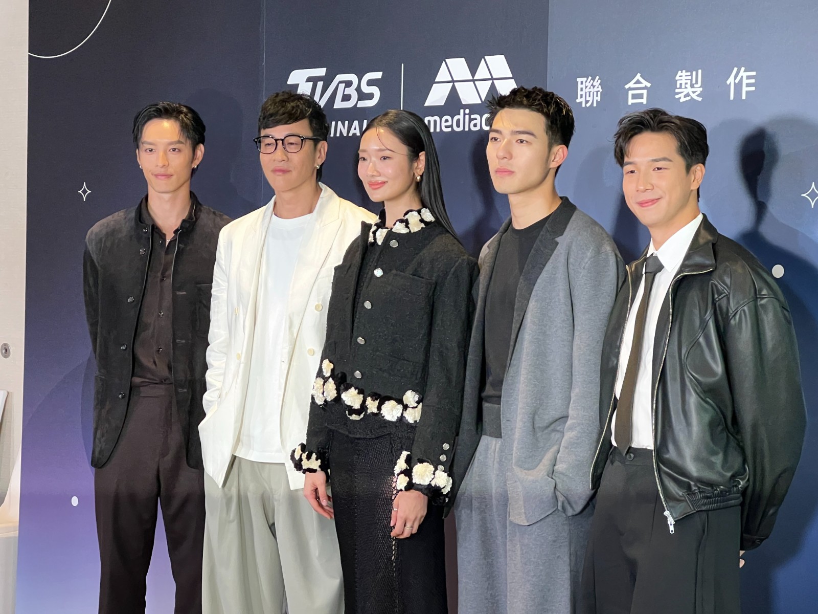 曹佑寧(左起)、何潤東、茱蒂蒙瓊查容蘇因、陳昊森、蔡程俊出席《對你心動的預言》發布會。黃于珊攝