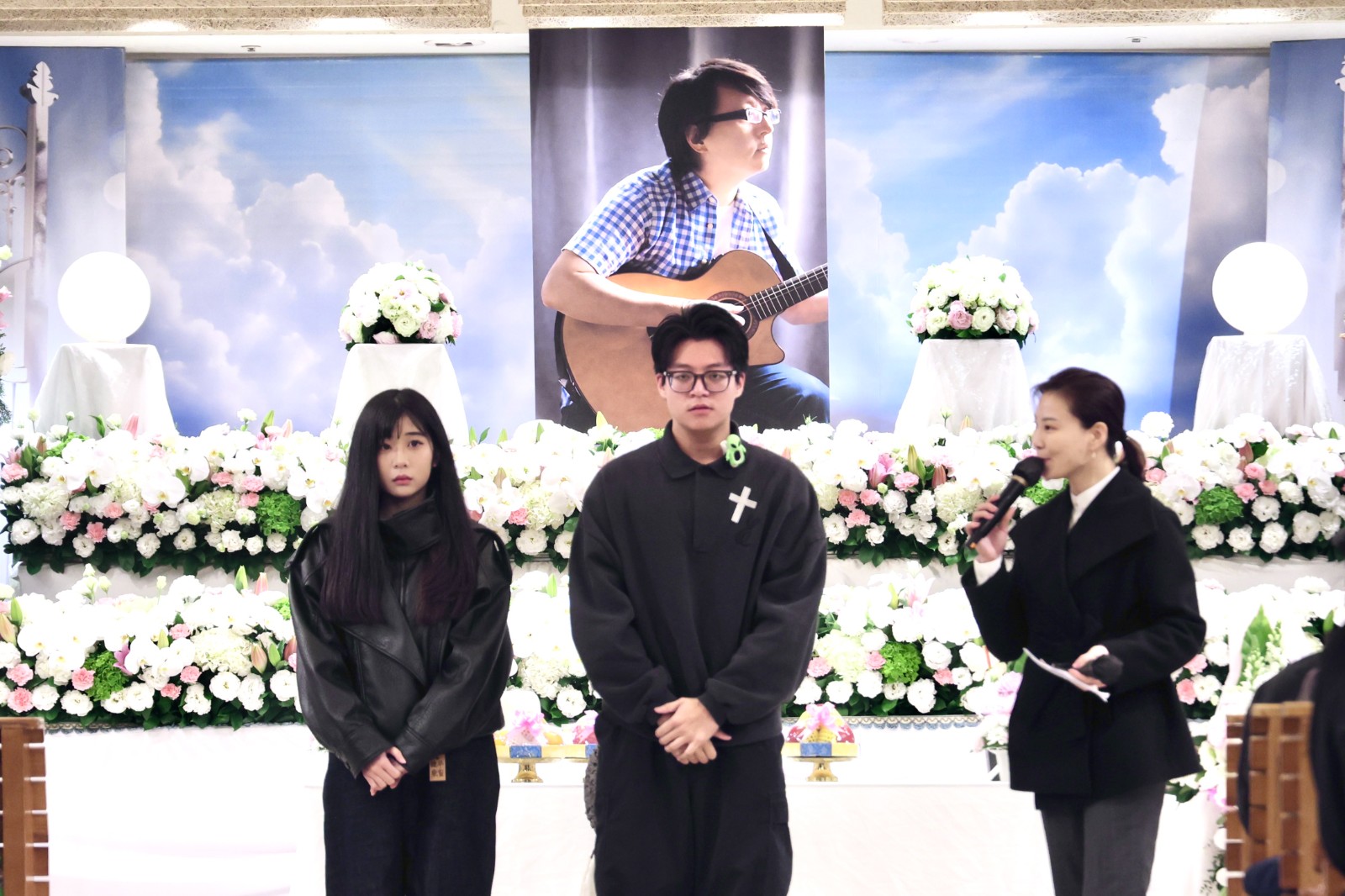 袁惟仁告別式布置以擺滿白花,中央擺放祂側身抱著吉他的照片,背景音樂則播放祂的經典名曲〈夢醒了〉,令到場的好友相當不捨。