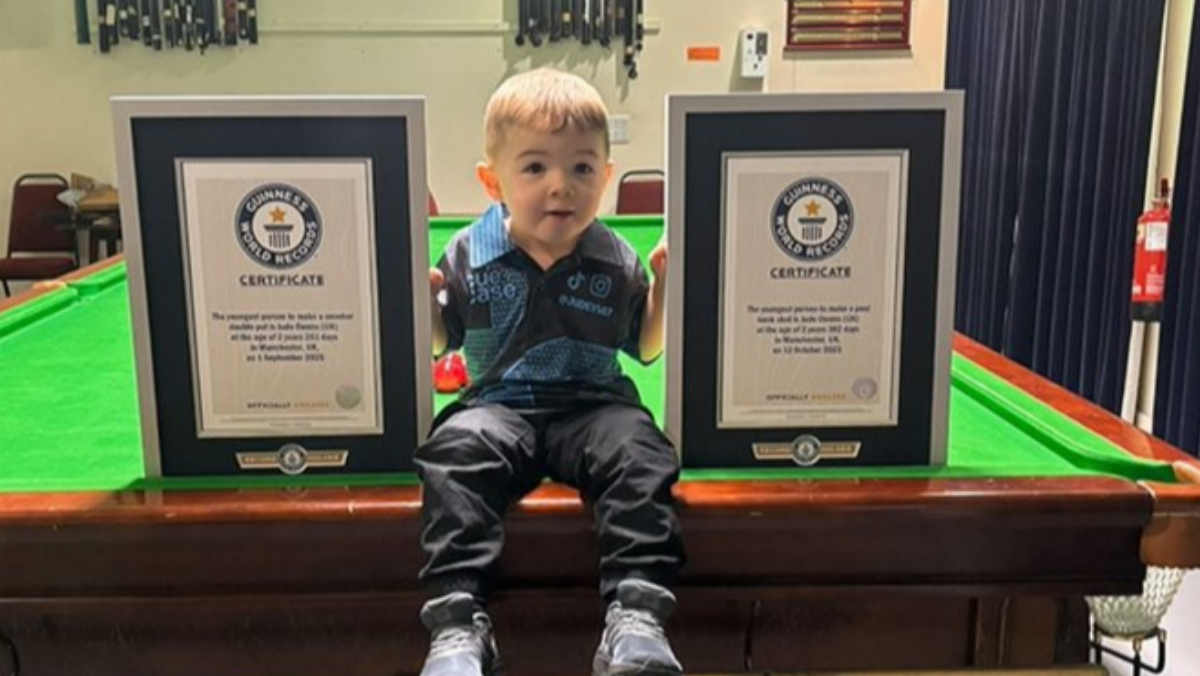 英國2歲2歲司諾克神童歐文斯(Jude Owens)締造金氏世界紀錄。圖片取自X@@MennyValdz