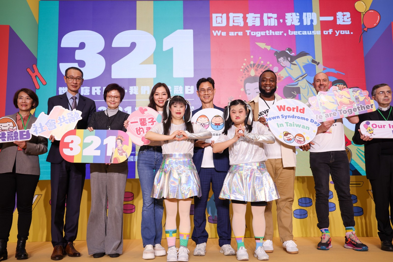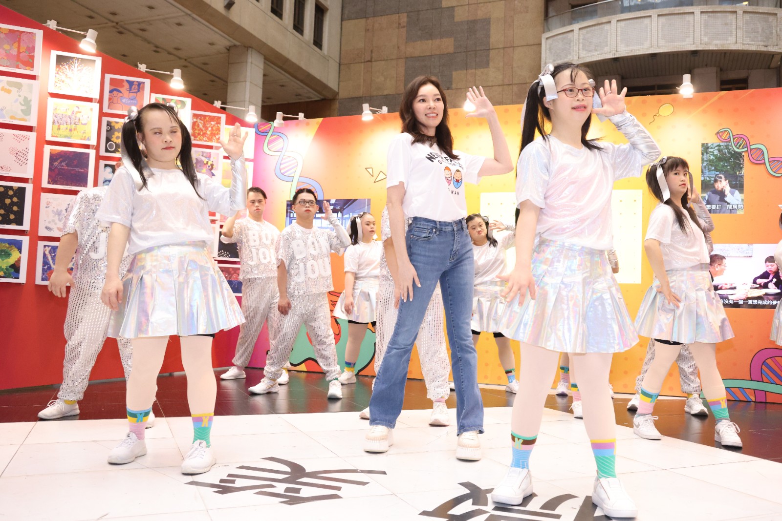 為響應「321 世界唐氏症日」,唐氏症基金會於台北車站大廳舉辦「321 因為有你,我們一起」特展開幕活動。廖瑞祥攝
