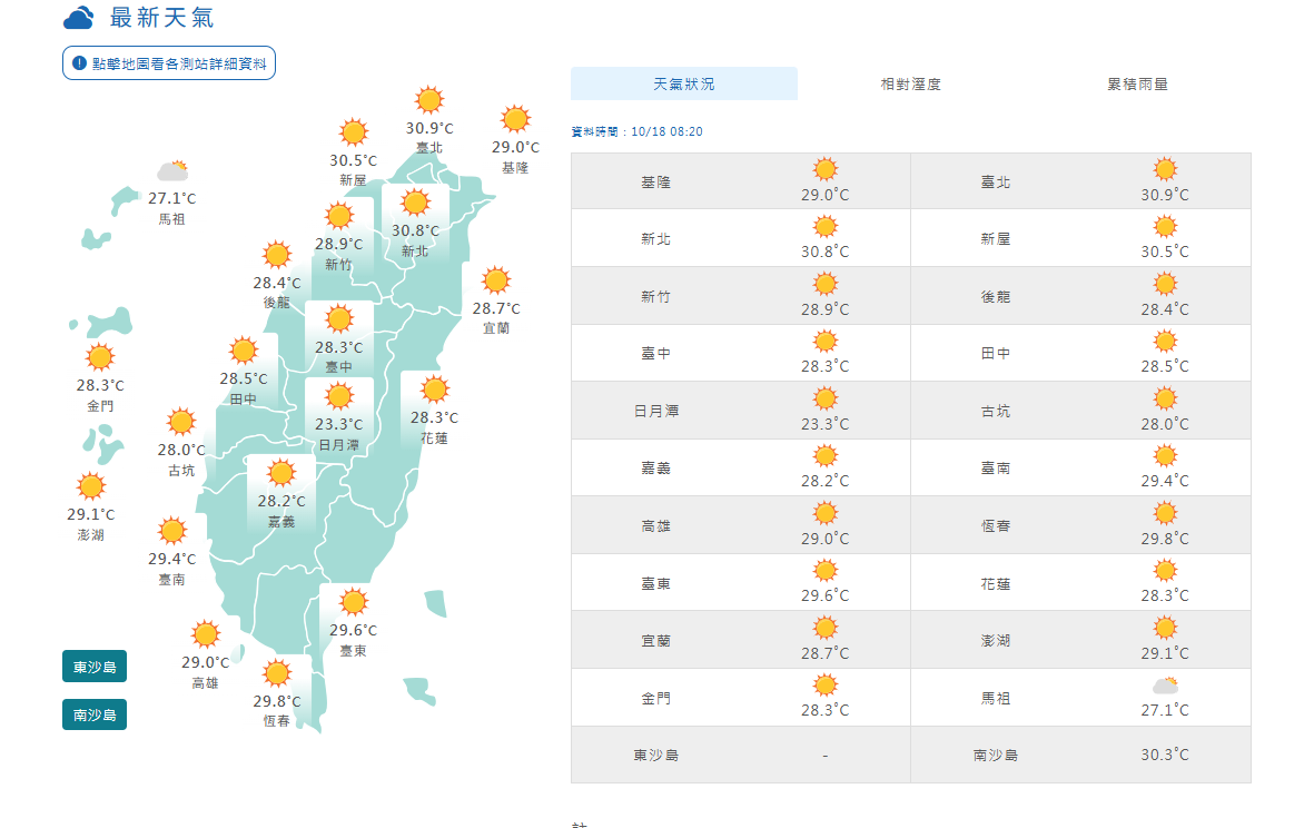 10/18最新天氣。取自氣象署
