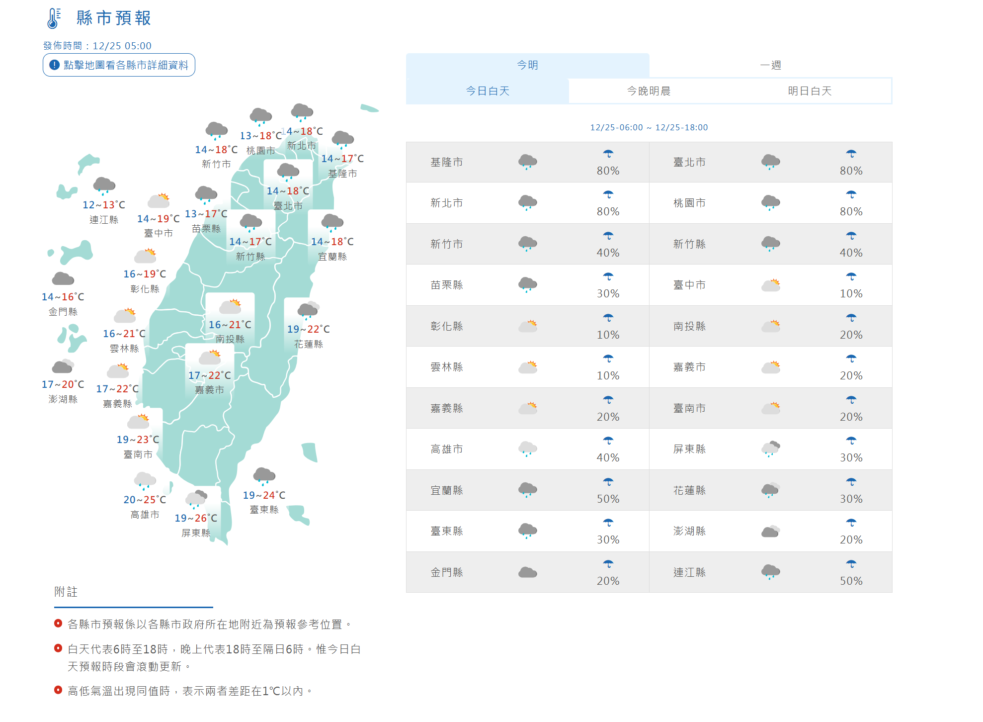 縣市預報。氣象署提供