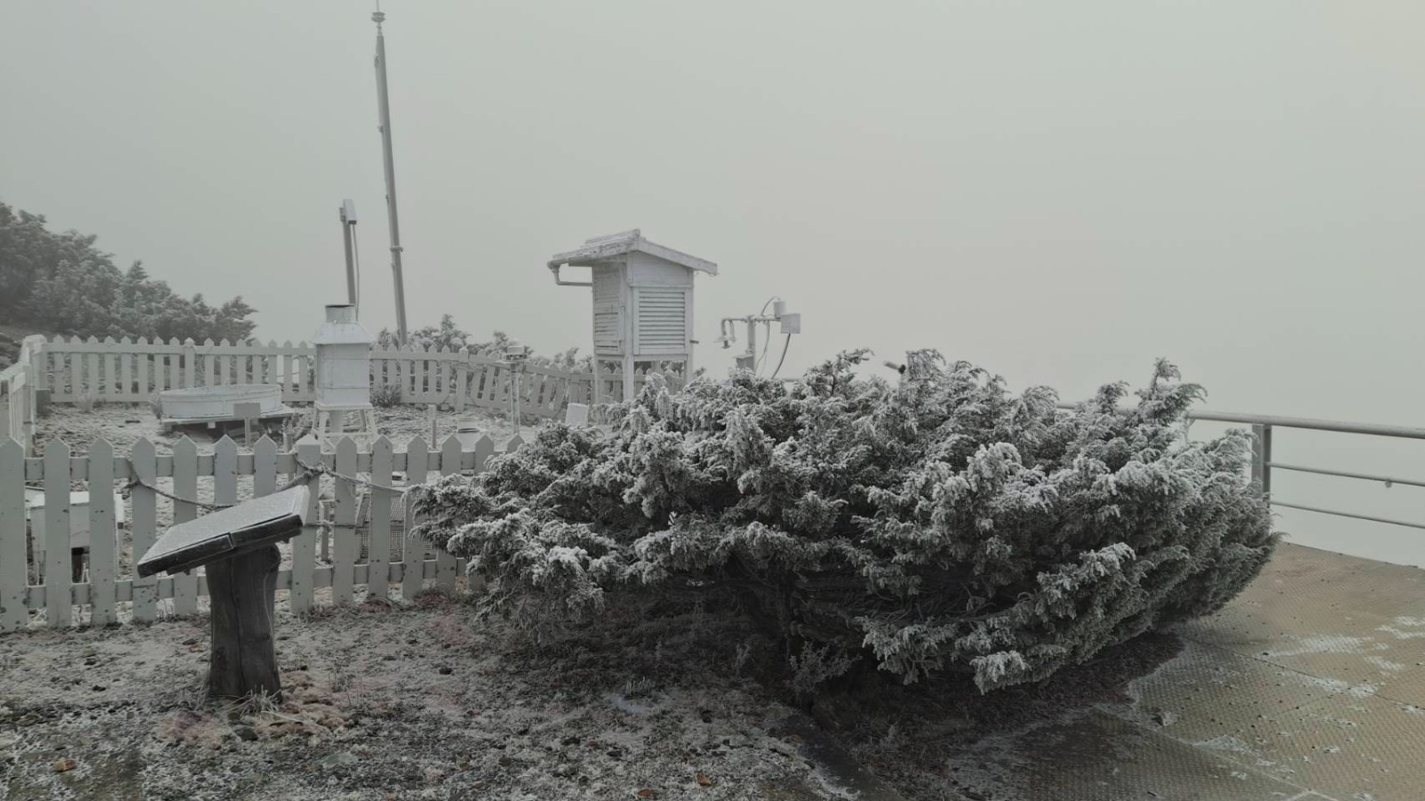 大陸冷氣團發威,氣象署表示,玉山北峰今天(12/26)早上06:28至06:38降雪,未完全覆蓋地面,無雪深。氣象署資料顯示,今日全台最低溫為玉山風口測站零下5.5度,其次為玉山測站零下4.7度。