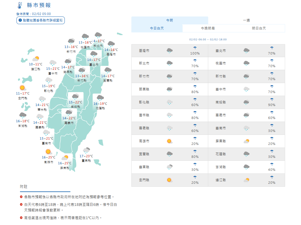 縣市預報。氣象署提供