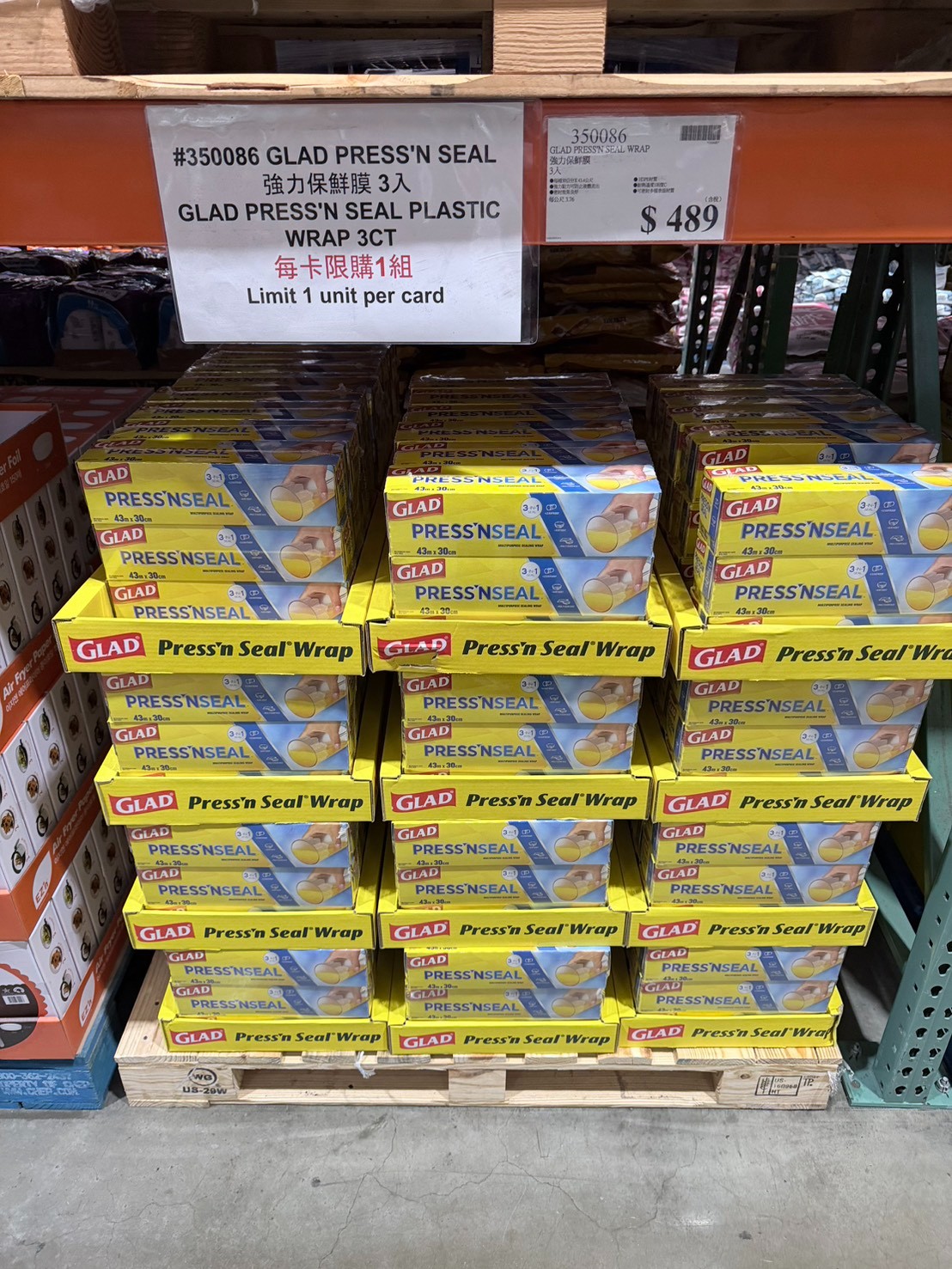 保鮮膜類則為科克蘭保鮮膜30.16公分×231.03公尺×2入、科克蘭保鮮膜30.48公分×914.4公尺、Glad Press’n Seal強力保鮮膜3入、Glad佳能PE保鮮膜300公尺×33公分×2入;另EZ’n拋棄式塑膠手套1000入,也被列為限購項目。