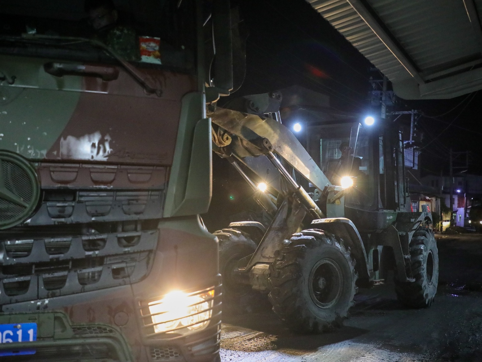 第二作戰區表示,為加速災區復原速度,工兵部隊持續採日、夜輪班制,利用深夜人員休息時機,派遣傾洩車等機具,清運大型廢棄物及道路淤土,分秒必爭,期使災區民眾早日恢復日常生活。