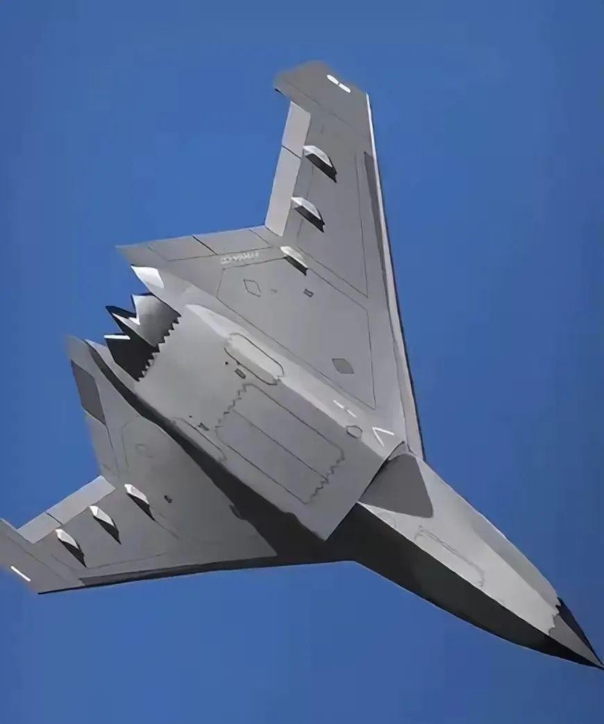 中國瀋陽飛機工業集團研製的第六代匿蹤戰機「殲-50」(J-50)仰視圖,可見其尾翼與主翼融合的「拉姆達」設計。摘自中國知乎