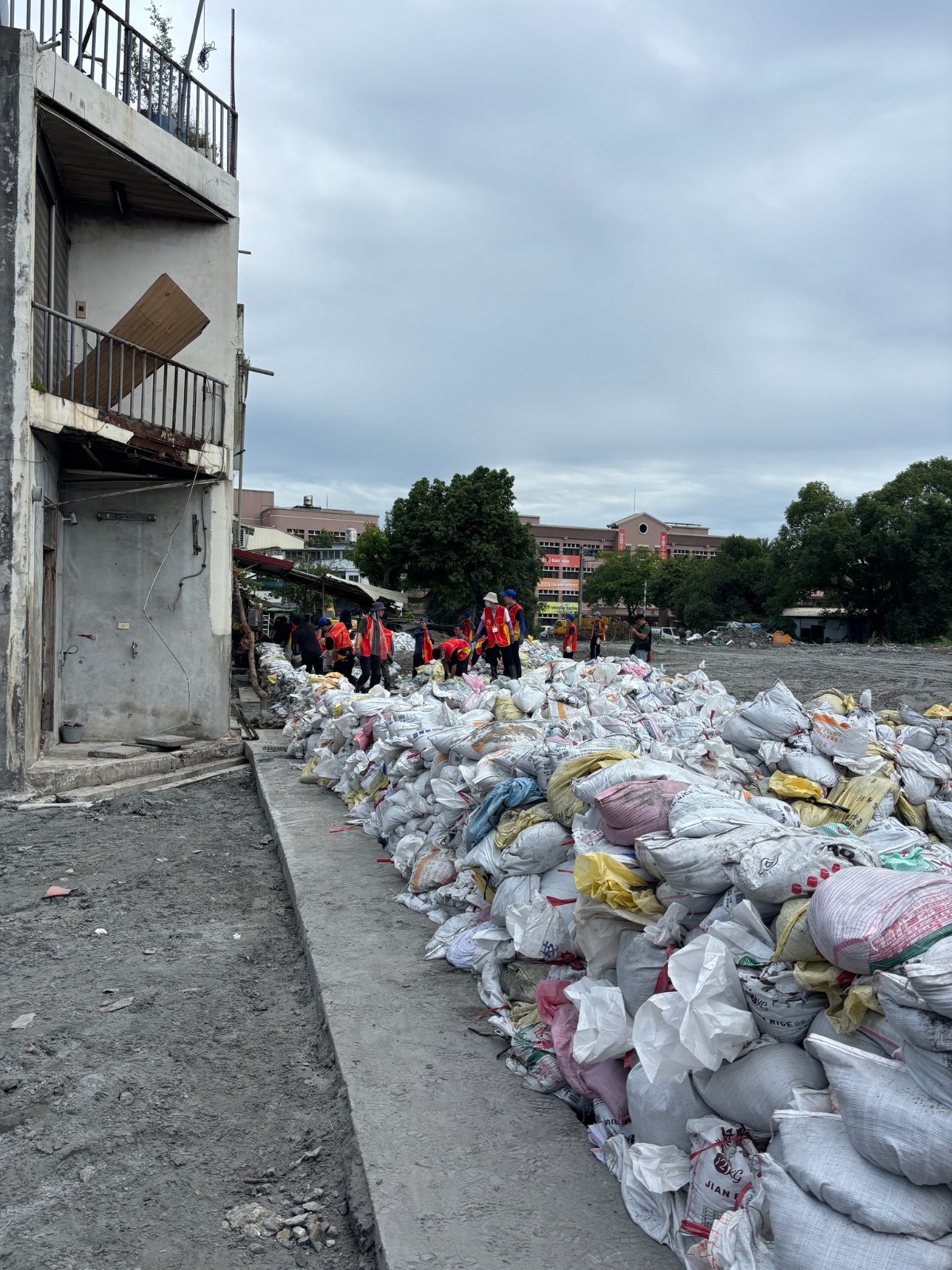 楊富民10/13-10/17應花蓮縣政府召集後備替代役到光復鄉救災,在臉書分享經驗,也指出縣府未能善用替代役男專長。圖為後備替代役搬沙包。摘自楊富民臉書