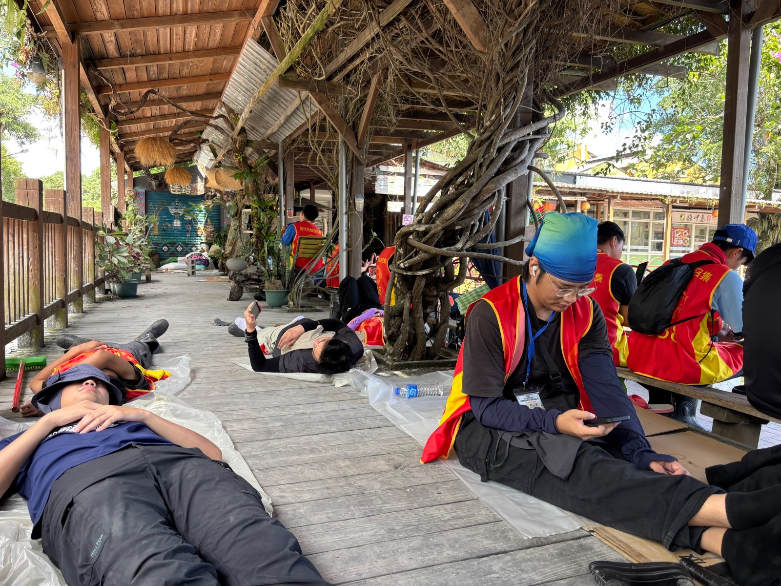 花蓮社區工作者楊富民10/13-10/17應花蓮縣政府召集後備替代役到光復鄉救災,在臉書分享經驗,也指出縣府問題,圖為備役替代役男在災區席地休息。摘自楊富民臉書