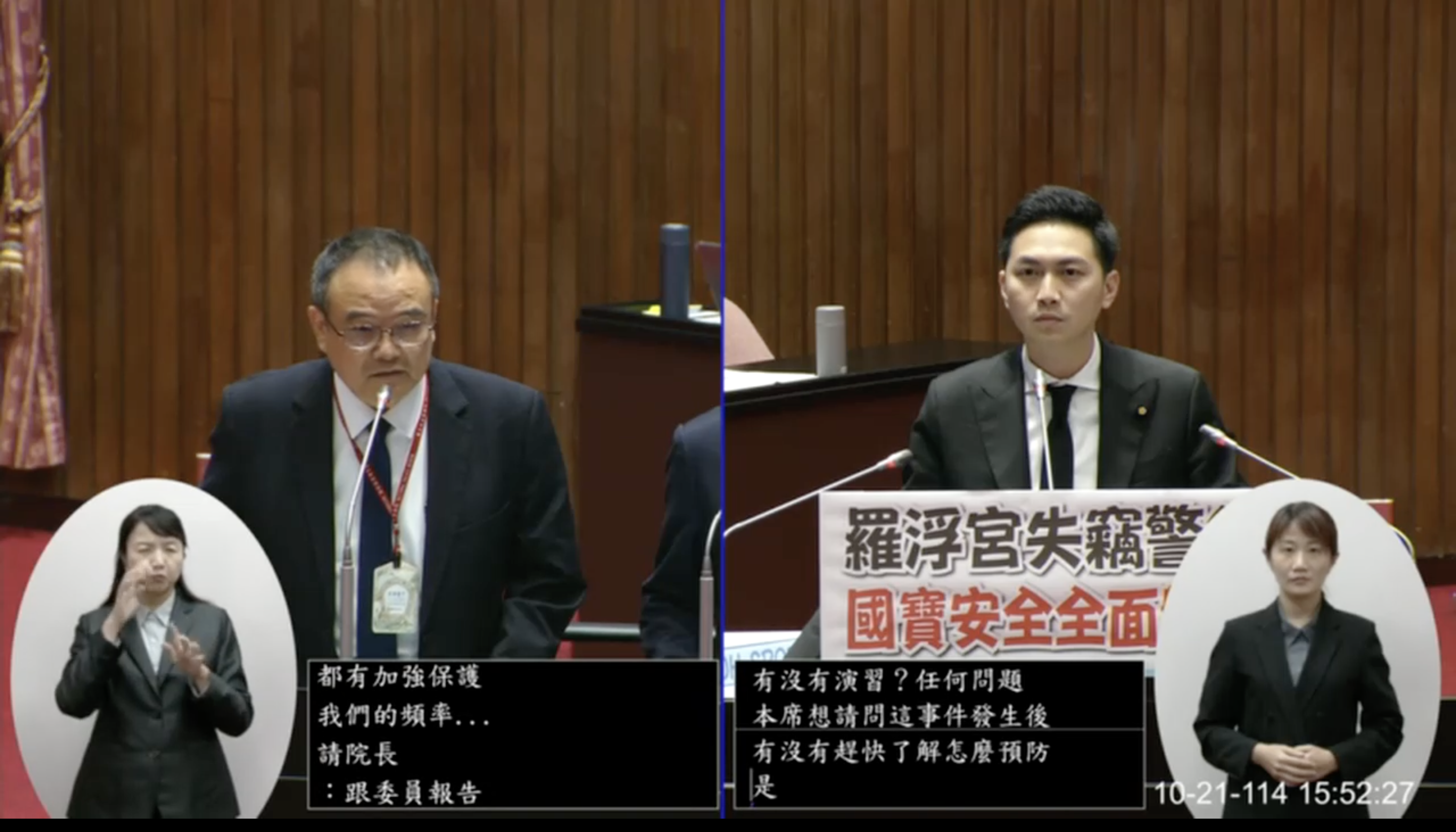 廖偉翔也問卓榮泰有無責成相關的單位、包含台北故宮或是國家級的相關館藏?重新檢視我們的保全夠不夠?有沒有演習? 有沒有任何的問題?