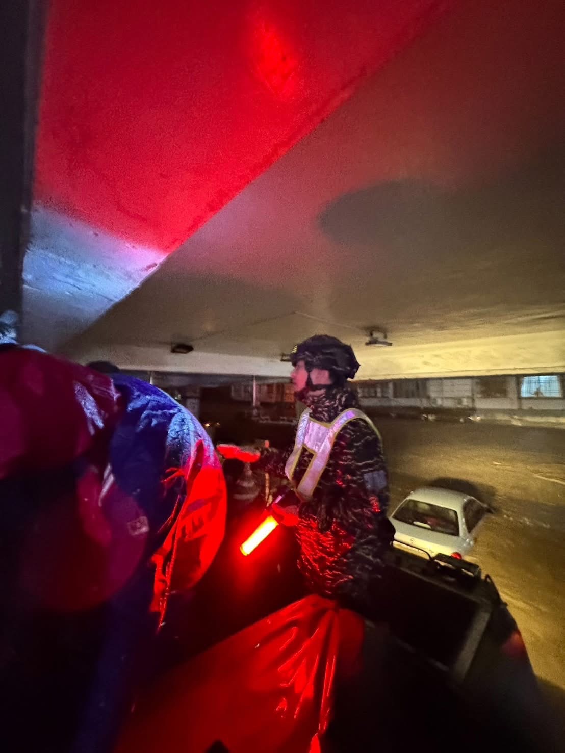 因應鳳凰颱風帶豪雨,海軍陸戰隊2025.11.11晚間出動AAV7兩棲突擊車深入積水嚴重的蘇澳地區,救出民眾。截自「我是中壢人」粉專