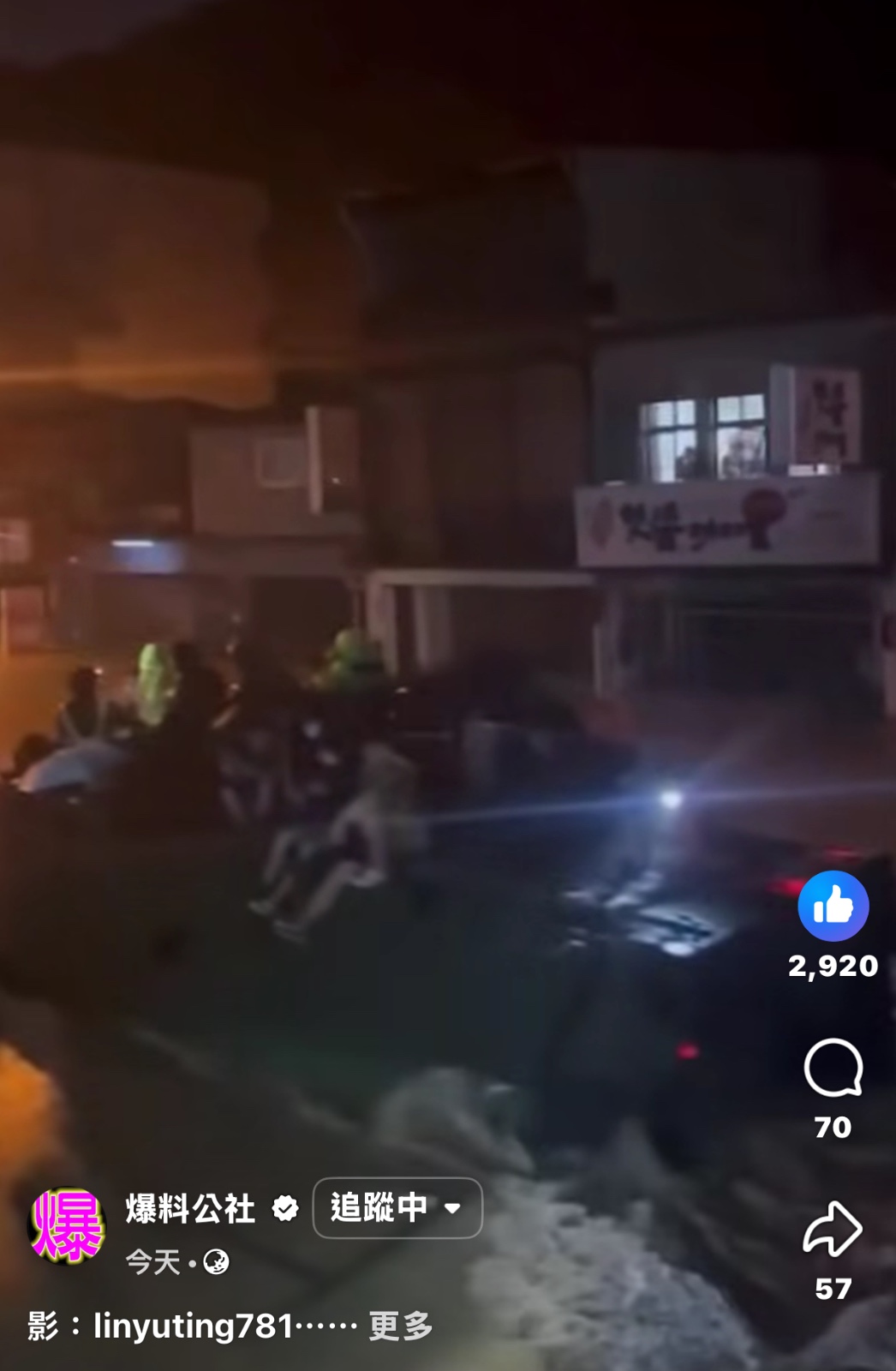 而臉書粉專「爆料公社」11日晚間也發出影片,顯示海軍陸戰隊兩棲突擊車AAV7車上搭載約十名民眾,涉水脫離淹水數十公分的區域。影片發出一個多小時已有3千多人按讚,給國軍快速投入兩棲車輛執行救災行動高度肯定。