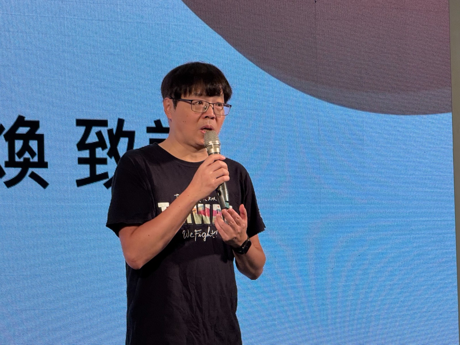 王興煥還向台灣綠黨甘崇緯笑說:「崇緯一個眼神就知道我在想什麼。」使得台上的甘崇緯等人與全場大笑。