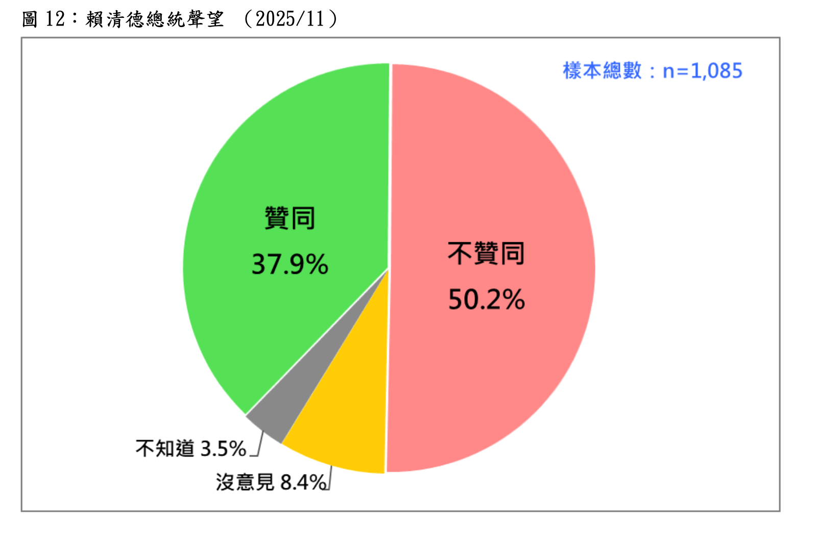 圖12:賴清德總統聲望 (2025/11)。台灣民意基金會提供