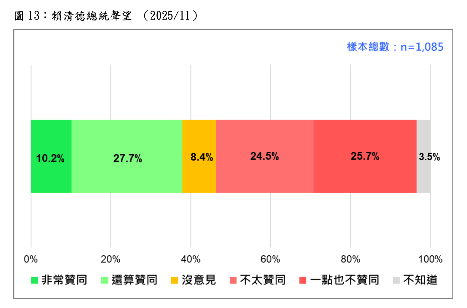 圖13:賴清德總統聲望 (2025/11)。台灣民意基金會提供